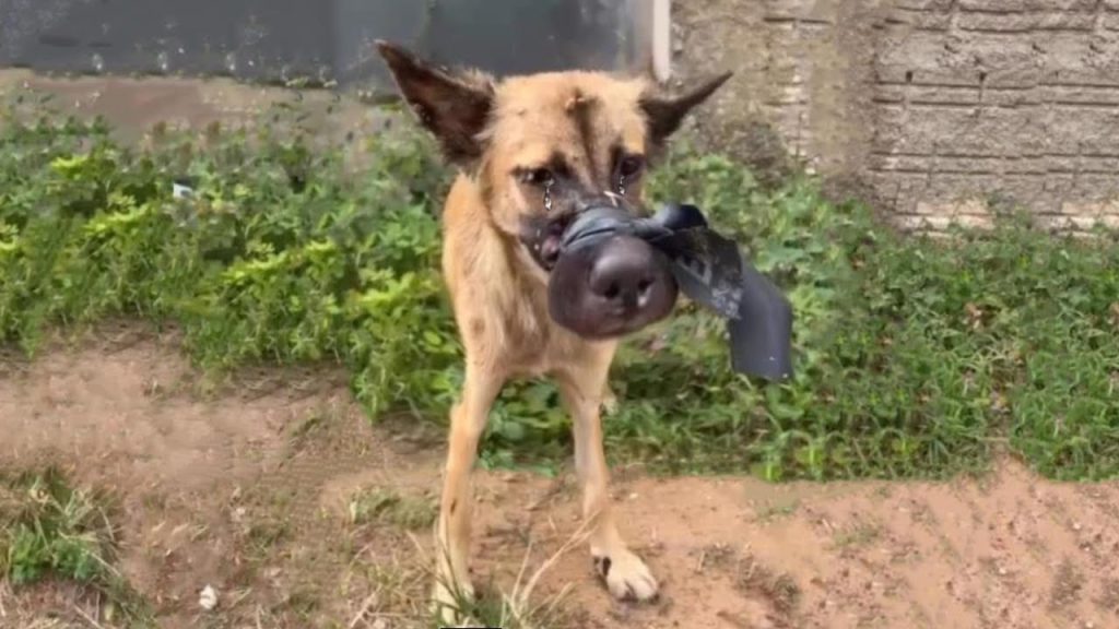 It was a quiet afternoon in a small Brazilian town when a call came through to the local authorities about a dog in desperate need. When officers arrived, what they found broke their hearts. A frail, trembling dog stood in a dusty yard, her muzzle tightly bound with layers of adhesive tape. She could barely breathe. Her face was swollen, her eyes wide with confusion and fear, and hundreds of ticks crawled across her fur. The tape had dug so deeply into her skin that raw wounds surrounded her mouth, a silent mark of the suffering she had endured.
