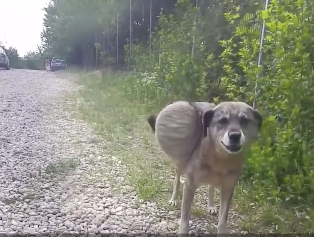 It began on a quiet afternoon when rescuers received a call about a frail stray dog struggling to move along the edge of a dusty road. The dog, later named Bunica, was barely recognizable as she limped forward, her back burdened by an enormous growth that seemed to weigh down her every step. Her thin body trembled with exhaustion, and her cautious eyes darted in fear whenever someone tried to get close. It was clear that Bunica had endured a long time of suffering, surviving on scraps and sheer willpower, abandoned by a world that had once promised her kindness.