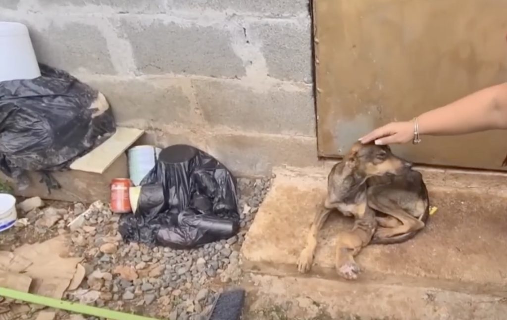 Neighbors said he had been there for weeks. No one knew how he managed to survive for so long. His body was weak, each rib visible beneath his dull, matted fur, and his eyes carried the weight of pain mixed with unwavering loyalty. The most alarming sight was his left front leg—swollen, inflamed, and clearly infected. Every step looked painful beyond words. Still, Hero didn’t give up. Despite the hunger, loneliness, and agony, he continued to search for scraps of food or maybe just a familiar face. His body was fading, but his spirit held on.