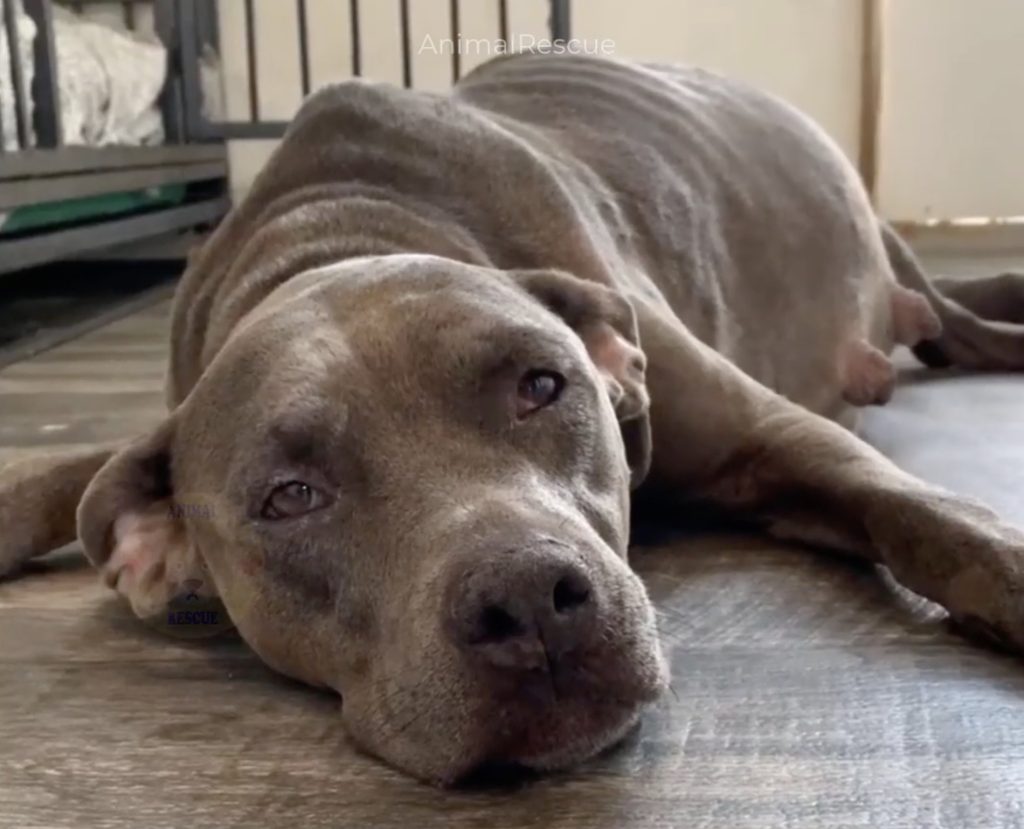 Rosemary, a gentle Pitbull mix, was found tied to a rope and left behind, abandoned with no shelter, food, or comfort. Heavily pregnant and completely drained, her body bore the weight of both her unborn puppies and the sorrow of neglect. When rescuers arrived, they were met with a dog who had every reason to give up—but hadn’t. Despite her exhaustion, Rosemary welcomed help with trusting, weary eyes. There was something in her demeanor that said she hadn’t lost faith in humanity just yet.