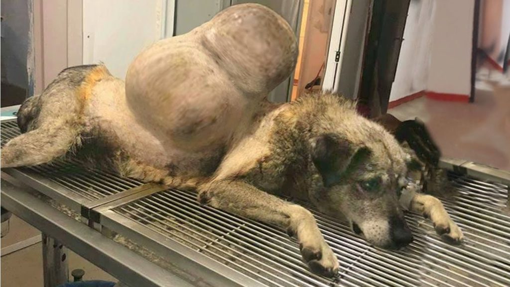 The dark, swollen tumor stretched across Bunica’s back like a burden she had carried for far too long. It was massive, nearly the size of a watermelon, tight against her skin, visibly pulling her posture into a painful curve. The size and weight of it explained her limp, her exhaustion, her inability to move freely. The veterinarian tried to assess it, but even with both hands, it was difficult to grasp the full mass.