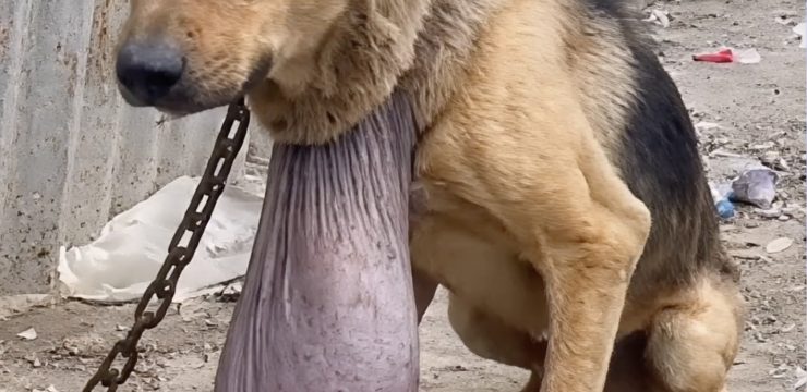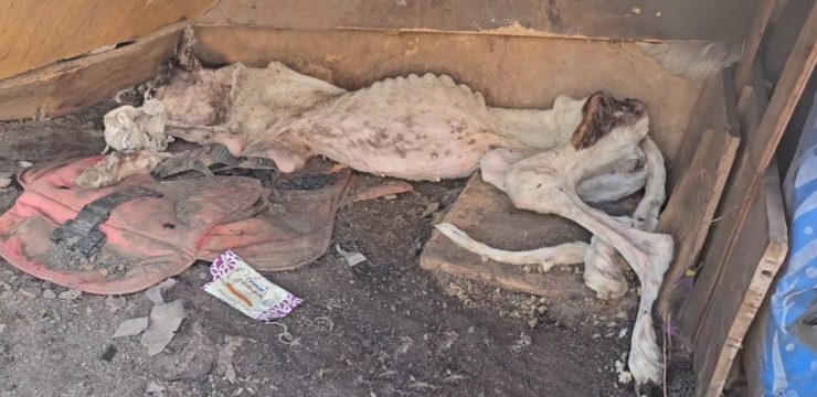 The new owners were unprepared for what they found. Inside that dark enclosure was a frail, malnourished dog whose body bore the visible marks of long-term mistreatment. Her fur was thin and patchy, her skin inflamed and wounded, and a heavy chain restrained her so tightly that escape had never been an option. Years of isolation had taken more than a physical toll. Angela’s eyes reflected a deep, instinctive fear of everything around her. Every sound, every movement, seemed to confirm the world as a place of danger rather than safety.
